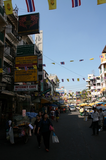 After the surprisingly pleasant 7 hour bus ride to Bangkok we hauled our lives onto our backs once more and began the hunt for a decent guest house. After deciding to go to Khao San Road a.k.a. Backpacker Central we quickly realised that we didn’t need to put much effort into finding a place to stay, the places to stay would come and find us (usually while shouting and waving at the same time!) Fortunately we ended up with a really comfortable place – a relief after some of the shitholes we had a look at – dropped our bags and ventured out into the insanity of Bangkok.